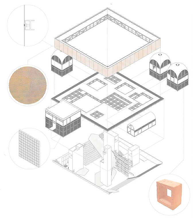La idea partió de la palabra encrucijada palabra que describe perfectamente lo que representa la plaza Altamira (donde se implanta el pabellón) al igual que las ciudades principales de siria. el pabellón le brindaría a esta zona de Caracas un espacio cultural y una llegada digna de una de las estaciones de metro mas importante de la ciudad al igual que espacio público techado y de apoyo a la plaza que acompaña (Plaza Altamira).